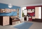 Основные преимущества модели: — широкий модульный ряд; — практичные, износоустойчивые фасады и корпус из ЛДСП; — дизайнерская стильная лицевая фурнитура; — оригинальные рисунки на фасадах в стиле поп-арт; — два вида кроватей; — ламели в основании кровати обладают ортопедическим эффектом; — большое количество вариантов компоновки модулей между собой.