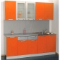 Кухня «Трапеза» шириной 200см, фасады витрины и ящиков цвета серый металлик, остальные фасады — оранжевые. Ширина модулей на снимке слева направо: [40см + 80см + 80см], их можно менять местами в любом порядке.
