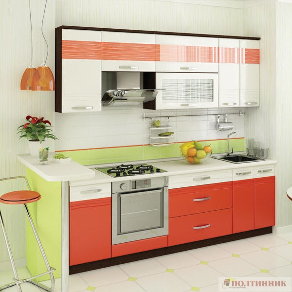 Набор мебели для кухни «Оранж 9» создан в гармоничном сочетании цветов — спокойного «крем-брюле» и солнечного «оранжевого». Рисунок в стекле дополнен мягкой волнистой фрезеровкой на фасадах шкафов и столов. В любое время года кухня «Оранж» будет нести в дом настроение лета, солнца и оптимизма.